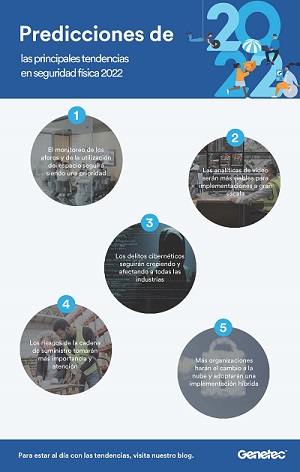 “Antes de la pandemia, el rol de la seguridad electrónica en la inteligencia comercial y las operaciones ya estaba creciendo, pero en los últimos dos años ha demostrado ser un activo estratégico para hacer frente a una variedad de desafíos”, afirmó Pervez R. Siddiqui, vicepresidente de Ofertas y Transformación en Genetec Inc. “A medida que vayamos saliendo de la pandemia, las organizaciones se enfrentarán a tres corrientes subyacentes: cambios en la dimensión física del trabajo a medida que los espacios de trabajo evolucionan hacia centros de colaboración y cohesión; automatización del flujo de trabajo de tareas básicas en un intento por impulsar la productividad y la retención; e interés a nivel de la junta directiva en lograr resiliencia operativa a través de la gestión integrada de riesgos.”
