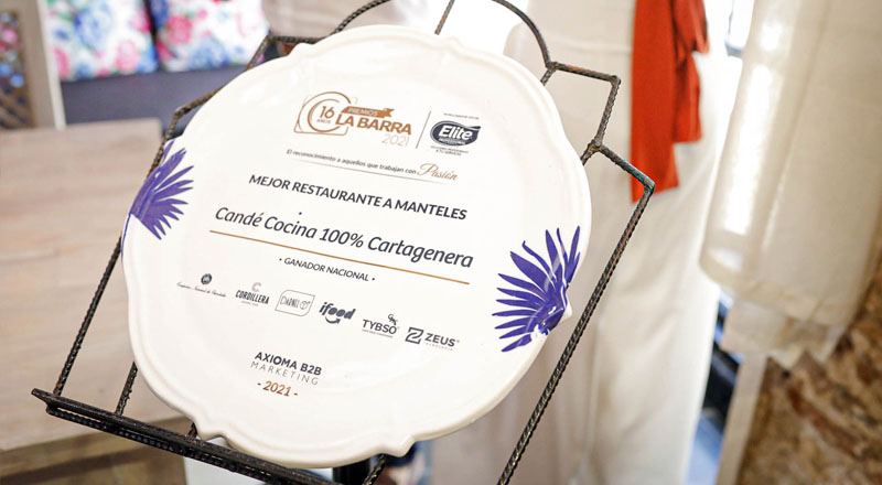 El restaurante Candé cocina 100% cartagenera, fue galardonado como “Mejor Restaurante a Manteles”, por los Premios La Barra 2021.
