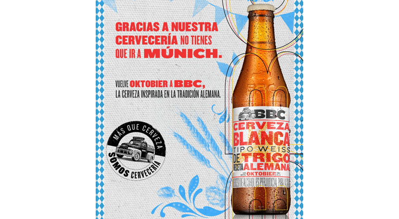 Este año BBC Cervecería llega con la edición especial de Oktobier, una propuesta de cerveza blanca de trigo, sin filtrar, con notas a clavos de olor, 5% de alcohol y amargo leve, que estará disponibles en todos los puntos de venta, a partir del 15 de septiembre hasta agotar existencias, para todos los apasionados por la cerveza.