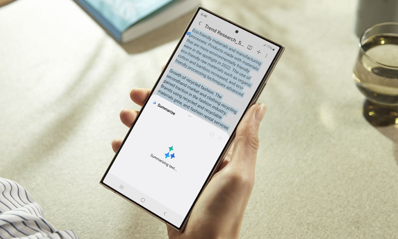 La función Asistente de transcripción del Galaxy S24 5G permite grabar y transcribir conversaciones rápidamente. Ideal para una reunión de trabajo con varias personas, solo debe usar la grabadora de su dispositivo y la IA y la tecnología de texto a voz transcribirá, e incluso generará un resumen de su grabación.