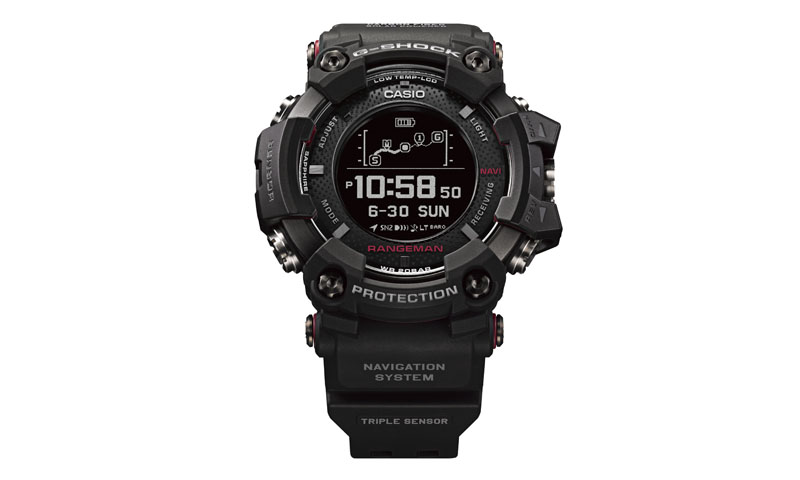 G-SHOCK trae un nuevo modelo con navegación GPS asistida por energía solar, el RANGEMAN GPR-B1000. El reloj recopila datos de ubicación de los satélites GPS para mostrar la ubicación actual en una ruta o rumbo a un destino, en tiempo real. También guarda datos de pistas y puntos (incluida la longitud / latitud, la altitud y la temperatura) en la memoria.