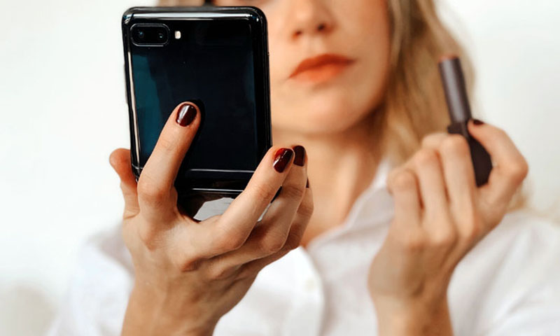 Galaxy Flip puede mantenerse abierto en diferentes ángulos, permitiendo que el usuario interactúe con el dispositivo sin necesidad de tocarlo; de esta forma, maquillarse, hacer un tutorial, hacer una video llamada de Google Duo o tomarse una foto será posible sin la intervención de ningún accesorio extra.