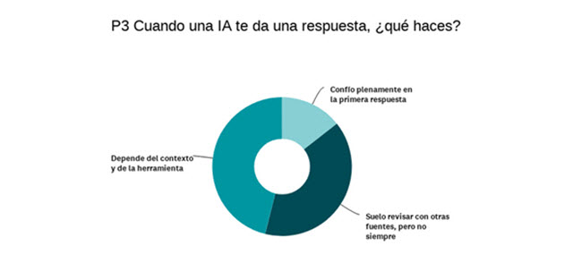 Uno de los datos destacados de la encuesta es que el 80% indicó usar la IA (45% lo hace frecuentemente, y 35% ocasionalmente). Asimismo, el 55% afirmó que no chequea siempre la información obtenida. El 14% no lo hace nunca, y el 39% lo hace solamente a veces. Desde ESET destacan que esto puede ser muy riesgoso.
