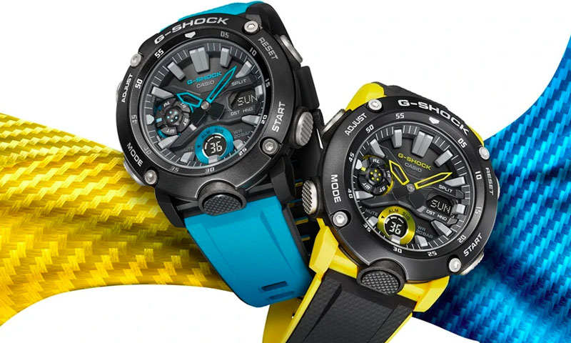 Del diseño de los nuevos relojes de la colección, se destaca la carcasa que está fabricada con una resina fina mezclada con fibra de carbono, a fin de que sea ligera y ofrezca una resistencia superior a la que brinda la resina por sí sola. Este material protege el módulo interno de deformaciones y daños producidos por golpes. La cubierta posterior doble protege la superficie trasera de impactos.