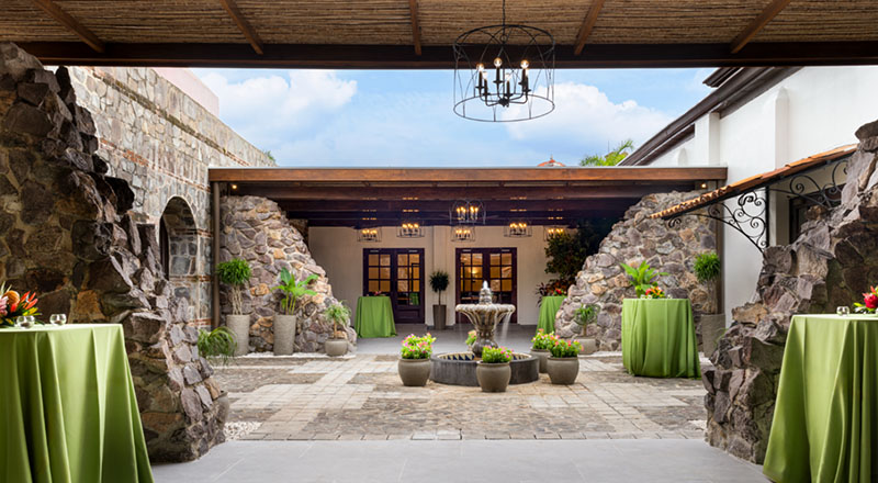 El hotel cuenta con 11 salones para eventos y los salones renovados ahora muestran un diseño colonial con un giro más contemporáneo, dinámico y con colores que evocan el mar. Adicionalmente, consecuente con la mentalidad sostenible bajo la cual se rige la propiedad, en los salones se incorporó iluminación LED y un sistema que requiere menor cantidad de bombillas, lo cual contribuye con la reducción del consumo energético.