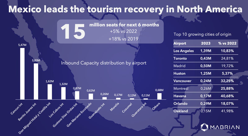 México se ha convertido en el líder de la recuperación del turismo en América del Norte, según un estudio realizado por Mabrian, el principal proveedor de inteligencia de datos para el turismo, presentada en la feria turística Tianguis Turístico, en su 47ª edición.