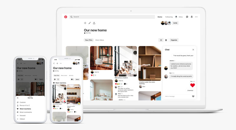 Inspirar a los demás ahora es más fácil que nunca. Una vez que se organiza y crean secciones para todas las ideas, se puede obtener comentarios de los invitados o incluso de otros usuarios mediante la función de reacciones.