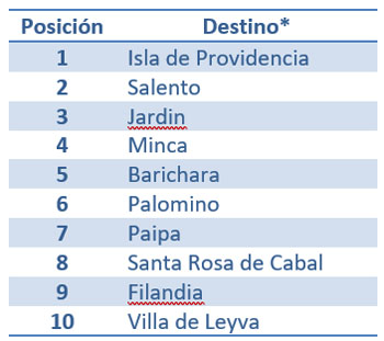 En esta oportunidad el Mar Caribe tomó el primer lugar con la Isla de Providencia la cual se ubicó como el destino más hospitalario. Sin embargo, el noroeste del país no se quedó atrás ya que 2 de sus destinos encabezan la elección en Colombia. Salento, en Quindío, y Jardín, en Antioquia, están en el segundo y tercer puestos respectivamente de los destinos más amigables.