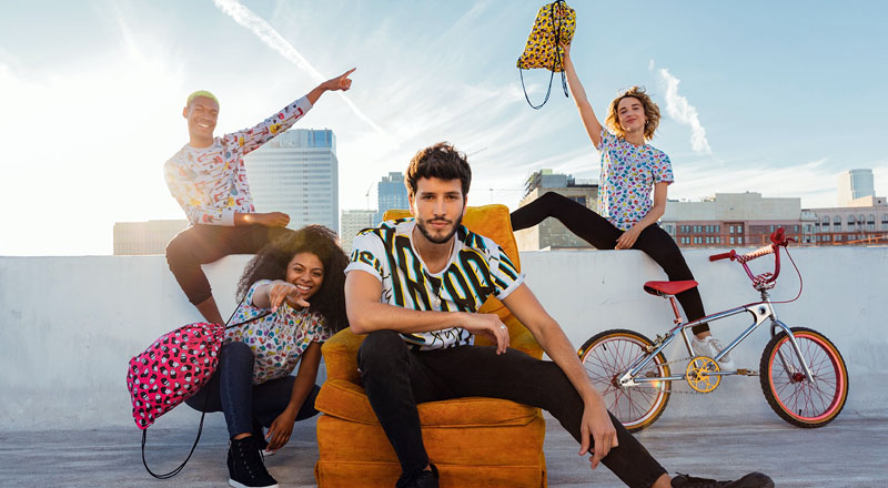 Friends: Este playlist de productos cuenta con una línea gráfica colorida con enfoque unisex con piezas inspiradas en sus amigos y en su alegría. El artista diseñó productos con una gran explosión gráfica en modo de comic, print de guitarras y sus caricaturas; ofrece una mezcla de colores vibrantes acompañada de colores neutros.