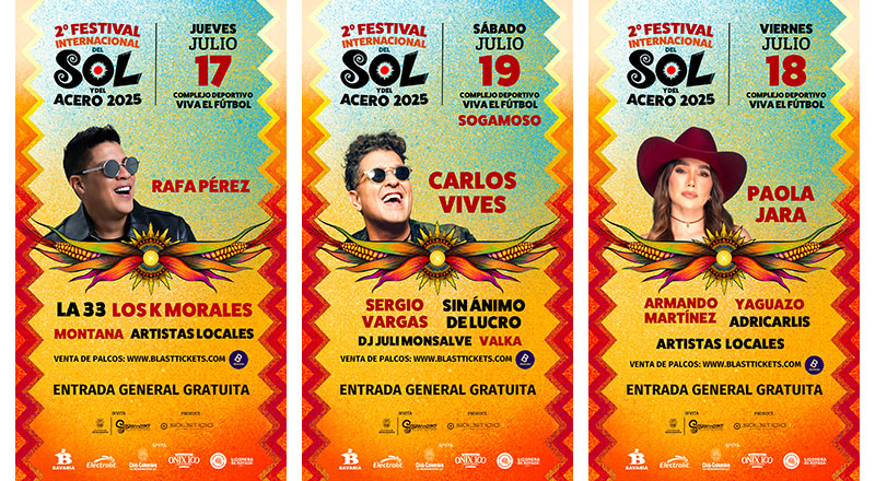 Sogamoso presenta el Festival del Sol y del Acero 2025 con una nómina de artistas imperdible. Sogamoso vibrará al ritmo de Carlos Vives, Paola Jara,…