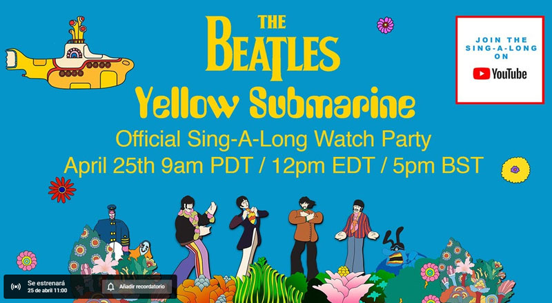 Este sábado 25 de abril a las 11 am de Colombia, YouTube presentará de forma exclusiva la película animada de Los Beatles “Yellow Submarine” en…