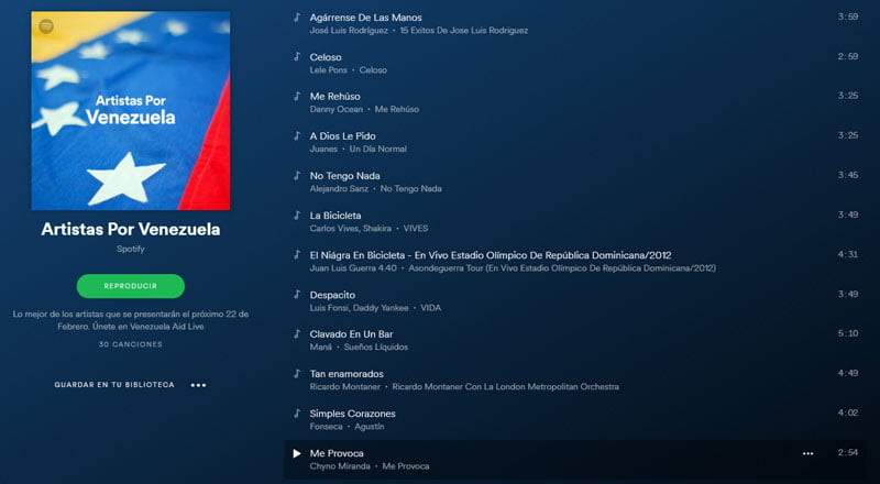 Spotify crea la playlist «Artistas por Venezuela» para el concierto Venezuela Aid Live