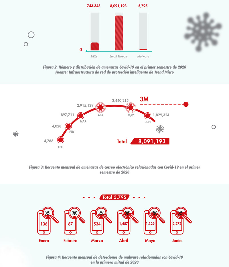 Trend Micro Incorporated publicó su informe semestral de amenazas de la primera mitad de 2020, en el que revela que detectó casi 9 millones de ataques relacionados con COVID-19 en solo seis meses, de los cuales casi el 93 % estaban basadas en correo electrónico.